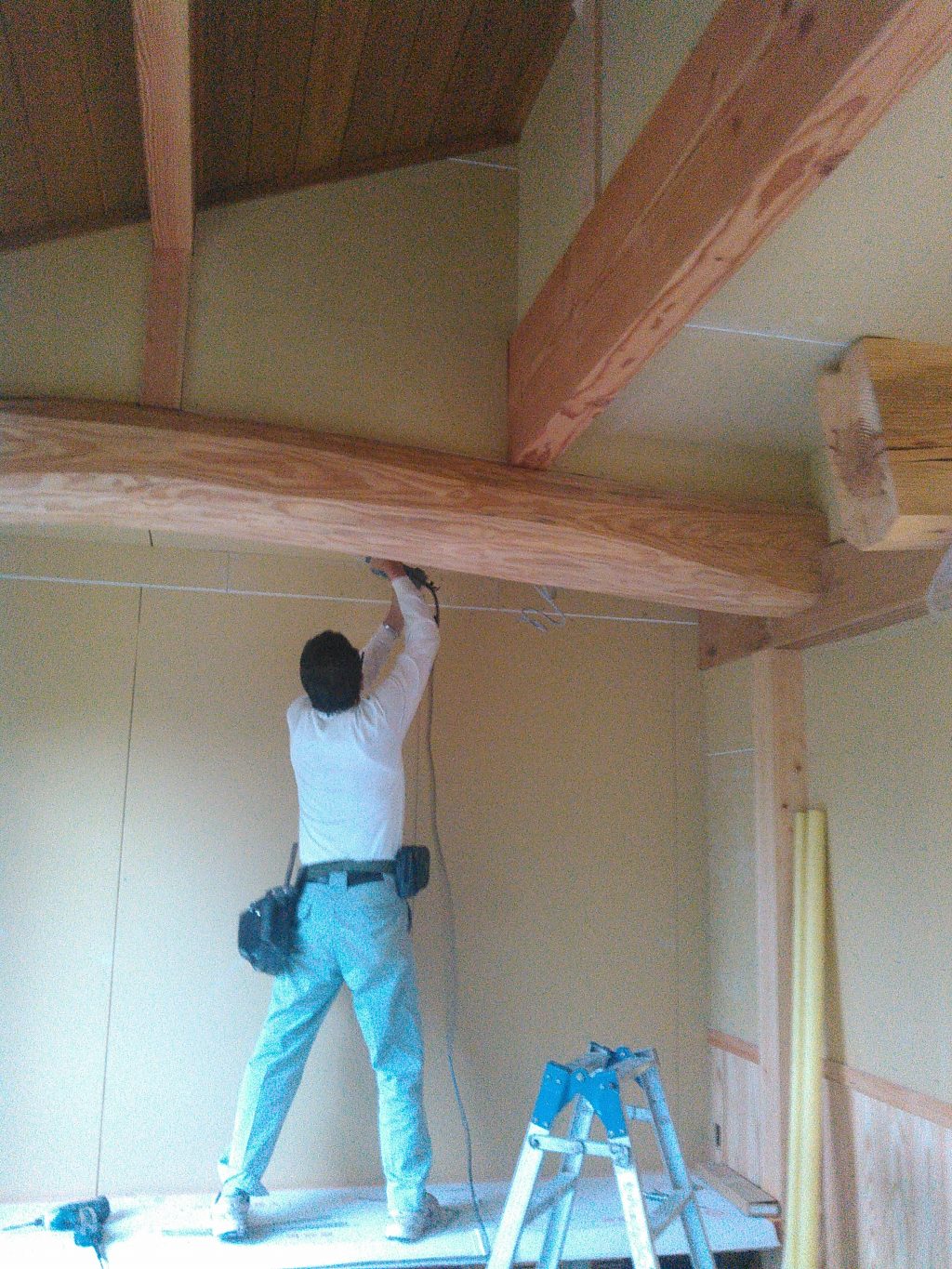 まぁ、話はそれぐらいとして、今日の我々の仕事は、内部の石膏ボードを張る作業でした。