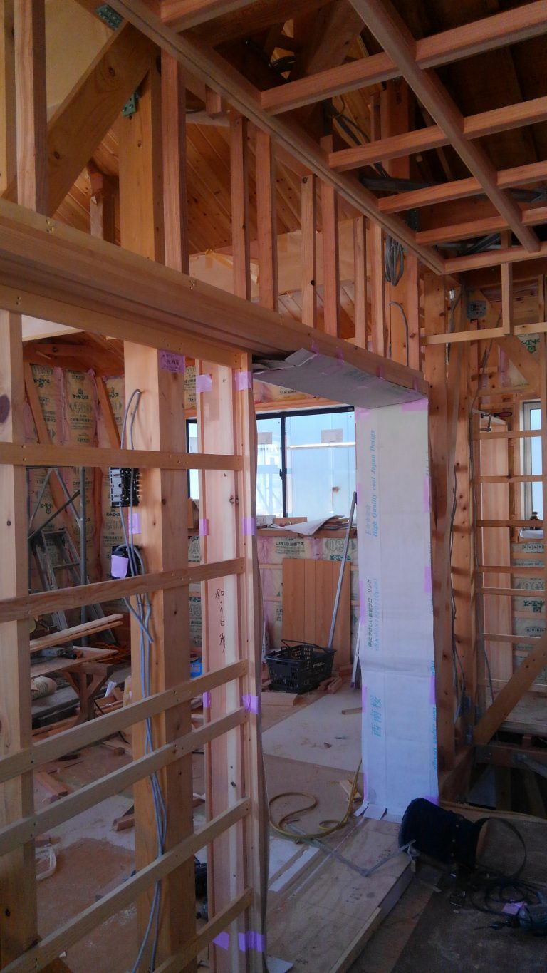 今日は、数件の打ち合わせに行き、なかなか大工仕事は捗りませんでしたが、社長の方は、近所のK様邸再生工事で建具枠の取り付け作業をボリボリ・・・進行中のようでした。