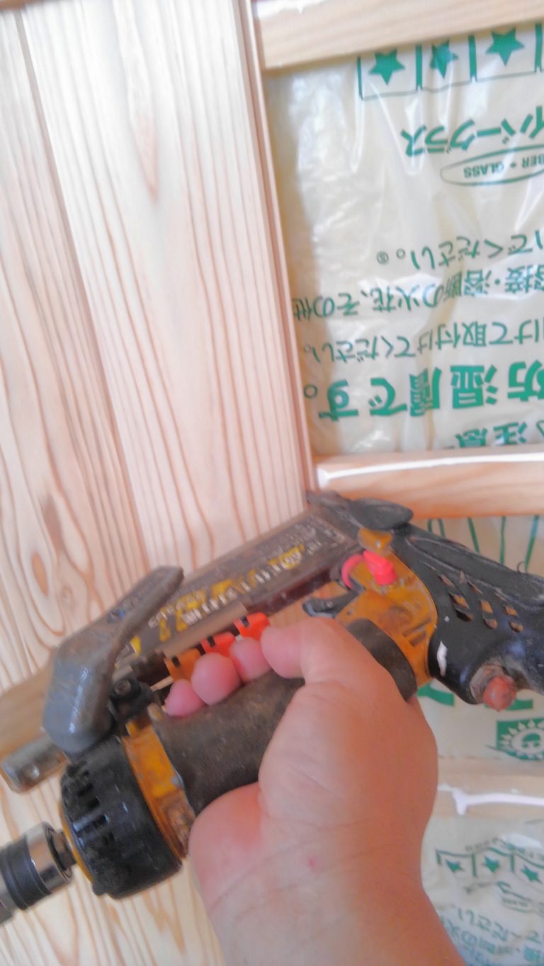 今日はワシの方は、なんか???体調子が悪いけん、軽めの作業にさせてもらい、腰板を少々張ってきました。