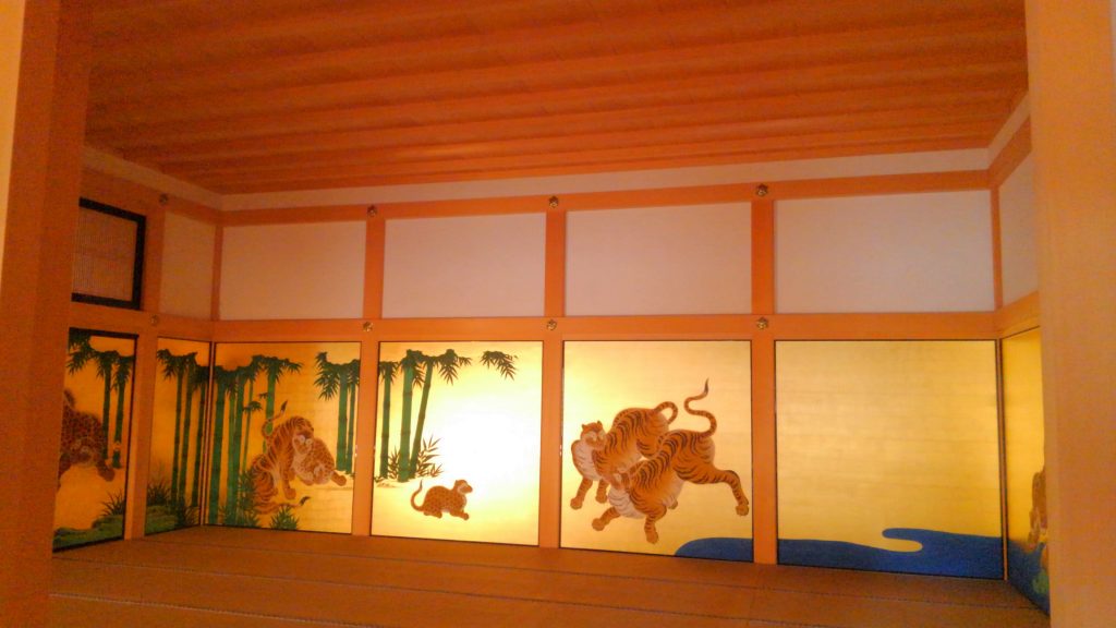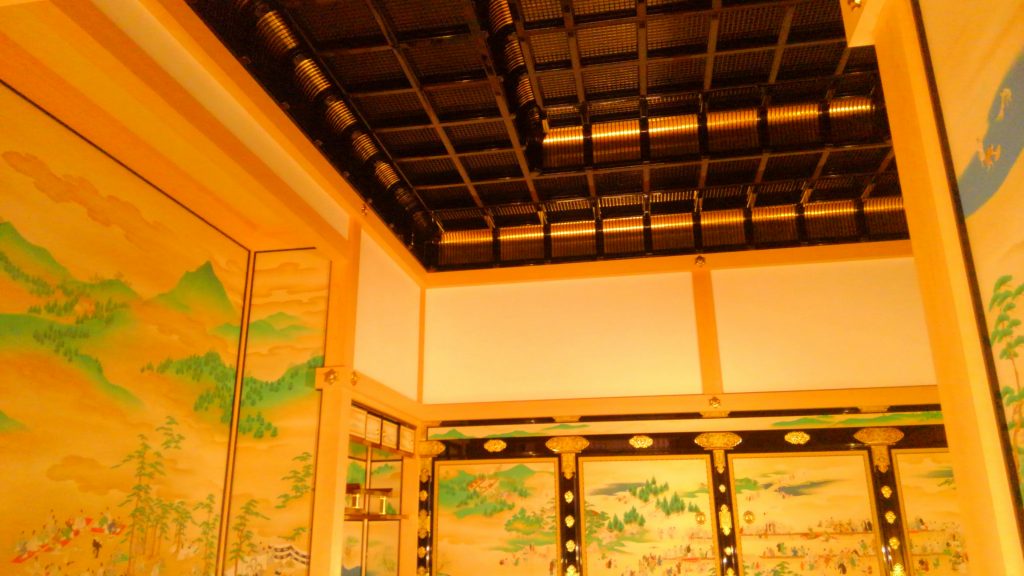 総ヒノキで作られて、ウルシ塗り???の折り上げ格天井。
