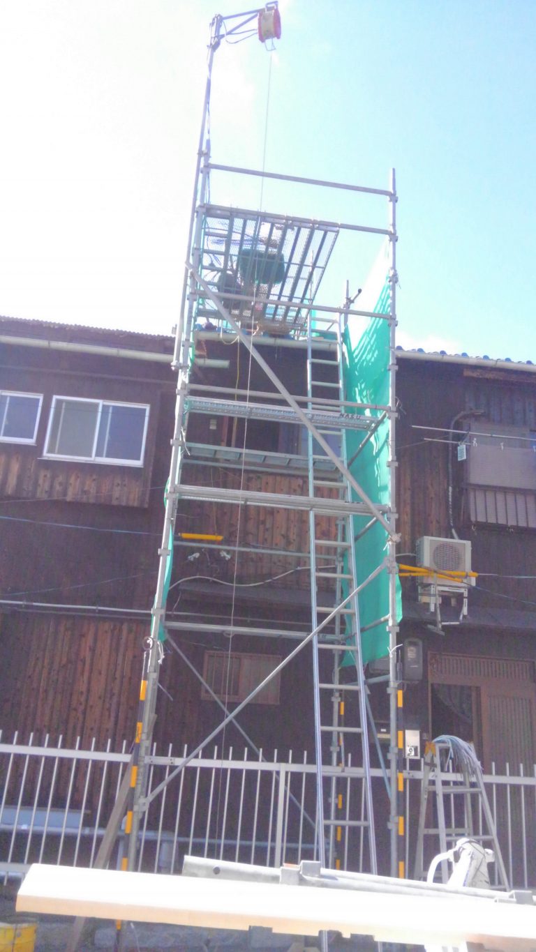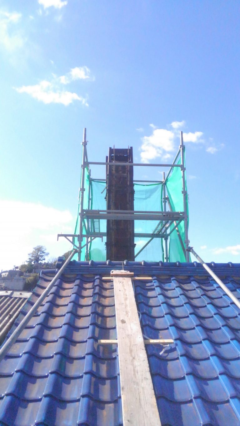 その後は、先日足場を組んだ、近所の某施設の煙突補強工事に鉄工所屋さんが入ってくれ、その下見を少々。