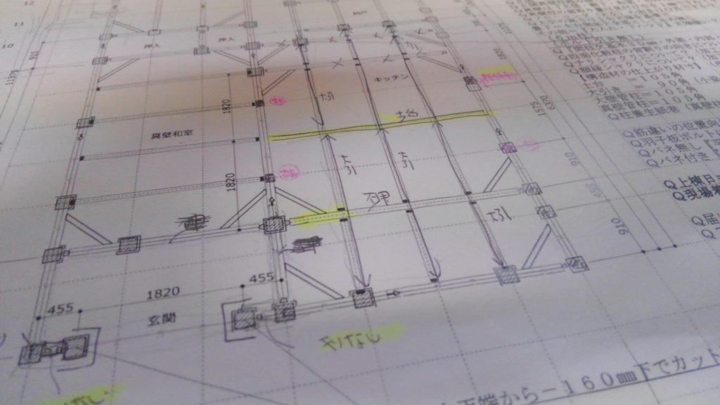 特に木造などは、たわみ、収縮、など様々な要因で家が沈んだり、狂ったりするんですが、いかにそれを最小限に抑え、スムーズに力を基礎に伝える事が、とても大切です。