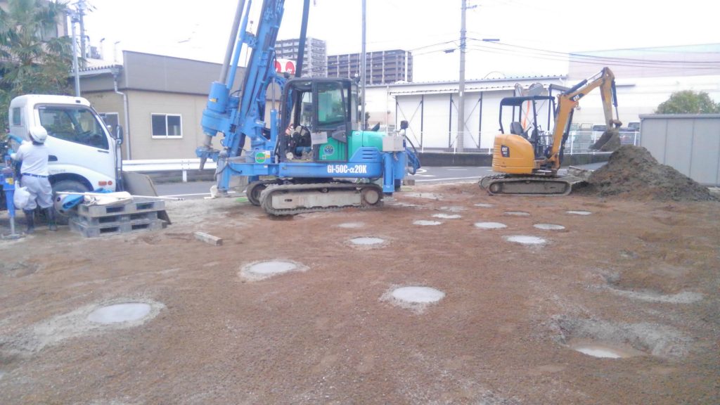 只今杭を打つこむ作業を進行中ですが、こちらの現場も、本日で地盤補強工事も完了。今後基礎屋さん、水道屋さん、シロアリ屋さんと、入れ替わりの作業が続きますが、えぇ感じで進行中です。