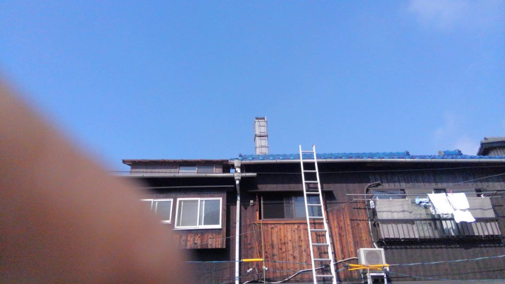 今朝の一発目は、社長、大黒さんとの三人組で近所の銭湯の煙突補強工事の足場ばらし作業に出発。
