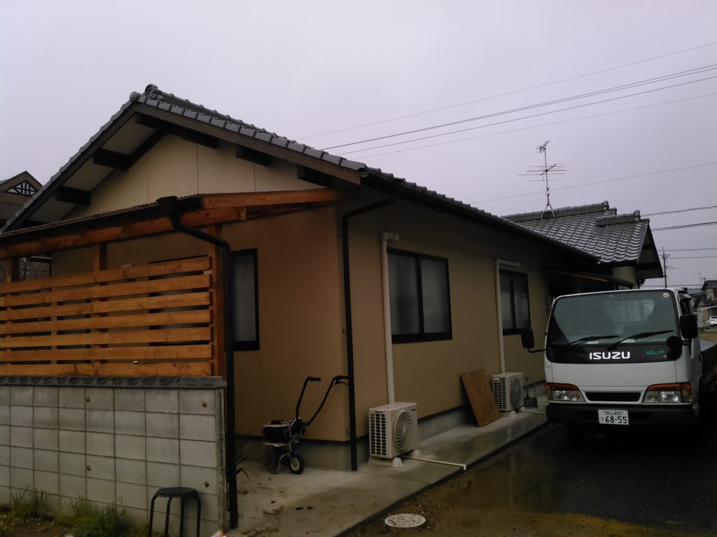 先週で外部の塗装をやり終えた塗装屋さんから、「全部完了しました。」との連絡で、長い間かかったO様邸の増築工事も、今日、足場をはずして、ようやく完成しました。思い返せば、着工したのは、梅雨が明けた7月の一番暑かった頃、お客様から、「ゆっくりやってくれたら、ええからな。」との優しいお言葉にそのまま、甘えてしまい約6ヶ月もかかってしまいました。