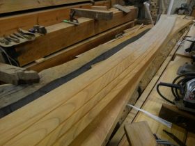 本日は、近所のお寺さんの「破風板」と呼ばれる、屋根に取りつく板???みたいな適当な説明ですが、そんなもんを作りました。