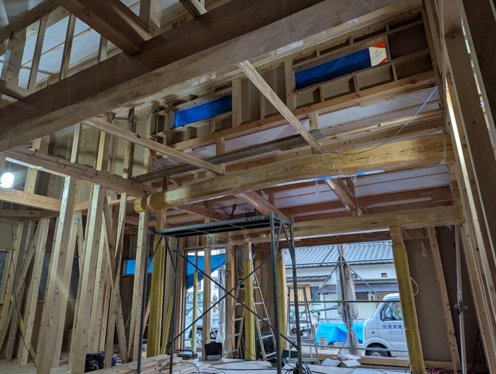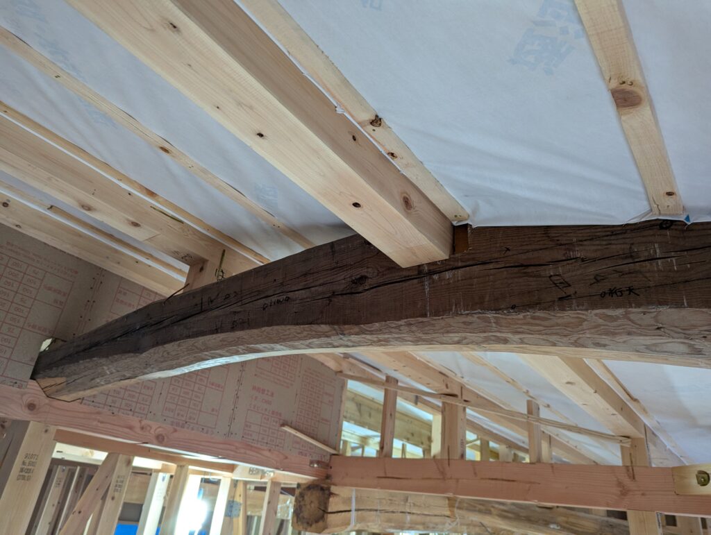 楽しい事、オメデタイ事、悲しい事、50年間のI様邸を支えてきた重要な木材でしたが、今こうして、新しい居場所として迎えられた一本のタイコ梁。
