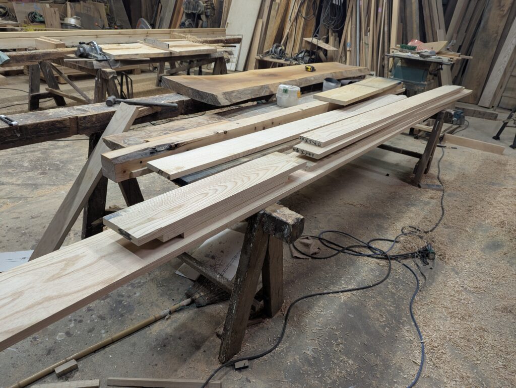 そしておやじさんの方は先週からの、作業場で造作材のこしらえを頑張ってくれているようです。。。