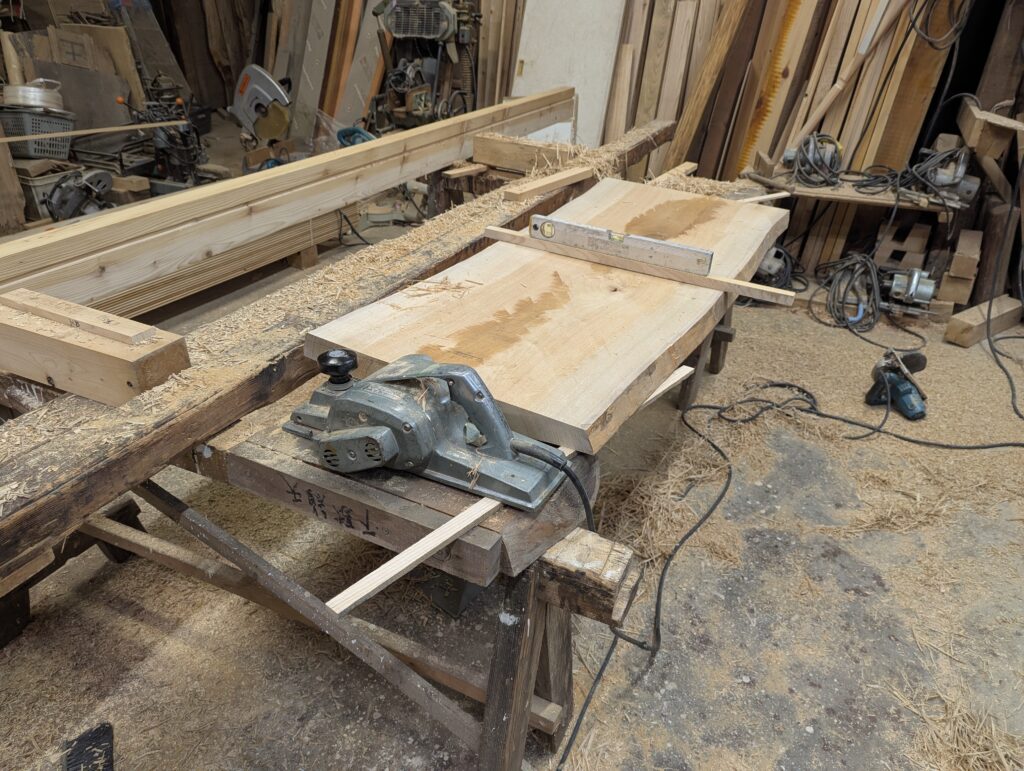 せっかく我々のような時代遅れの大工に仕事を依頼されたお客様に、納得して作り上げれるよう、作業場でコツコツ・・・頑張ってくれております。