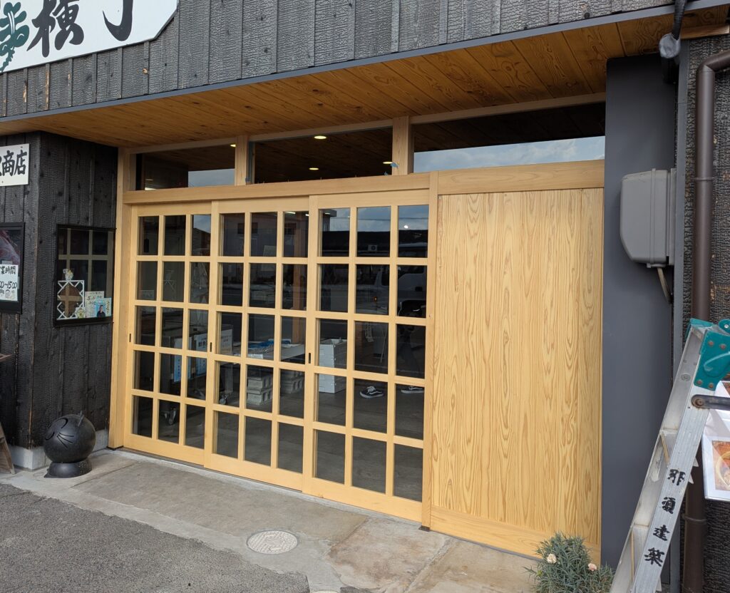 そんな本日は下津井で進行中のY商店様の店舗前の間仕切り建具の取付作業からでした!!