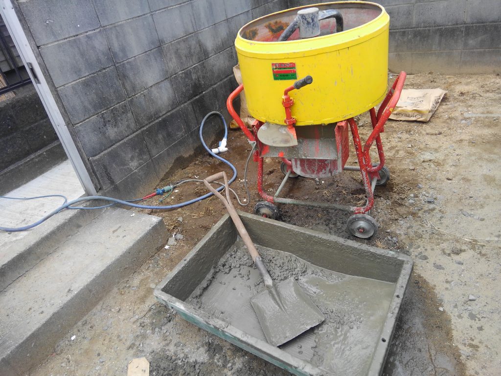 自家製コンクリートを作っては、小運搬、そんでまたコネコネ・・・・小運搬・・・・・