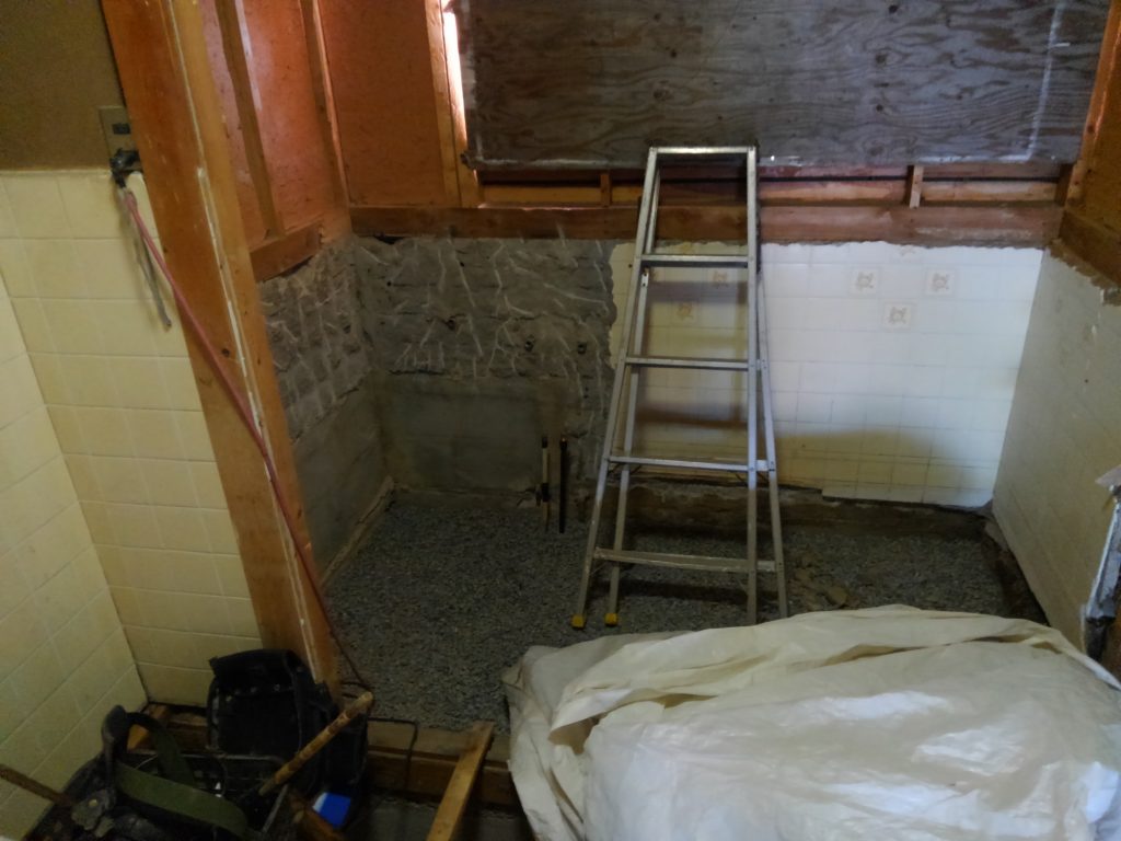 その後、こないだ社長が嬉しそうに買ってきた、「はつり機」の出番となり、風呂と便所の解体作業。