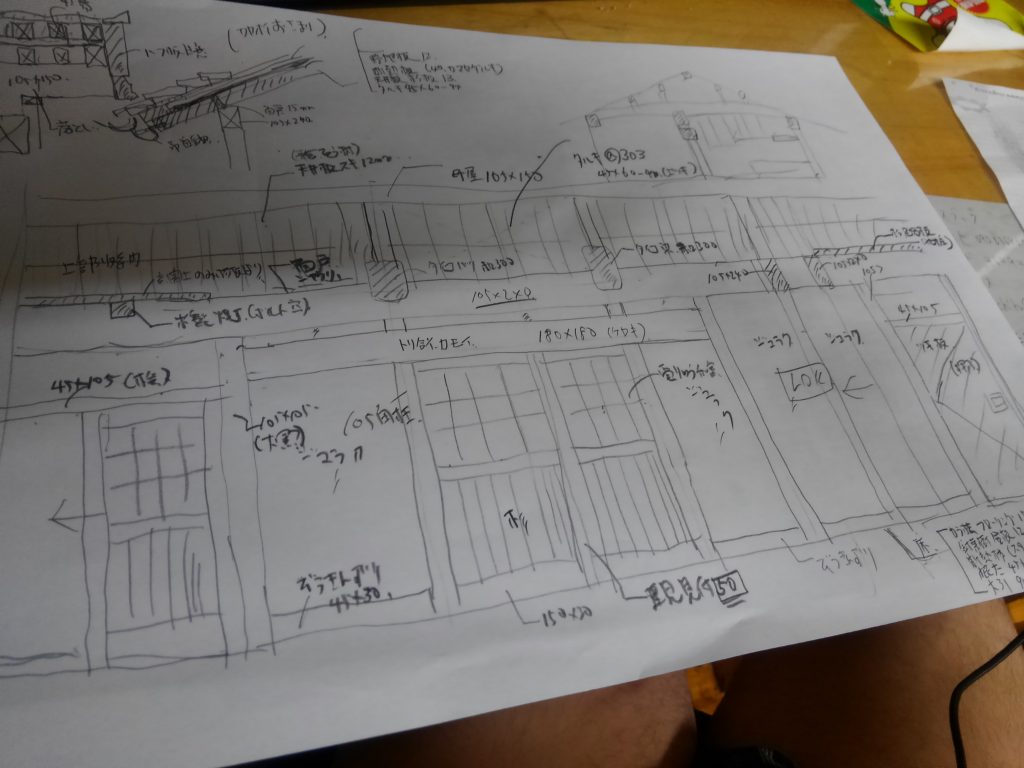 よく社長に、「お前の書いとる字は読めんのんじゃ!!!」とよく言われますが、情けないことに、数か月前に作っておいた、下書き設計図を清書をしようと、引っ張り出したんですが。。。。