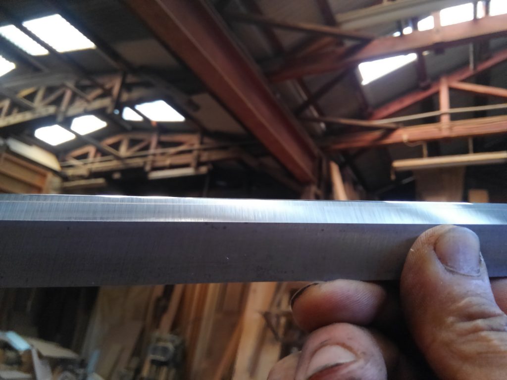 こりゃぁ。。。ヤバい。。。社長が島から帰ってきて、まさかの「帰れんがぁ・・・」事件で、仕方なく、一人傷んだカンナ刃の研ぎ作業。