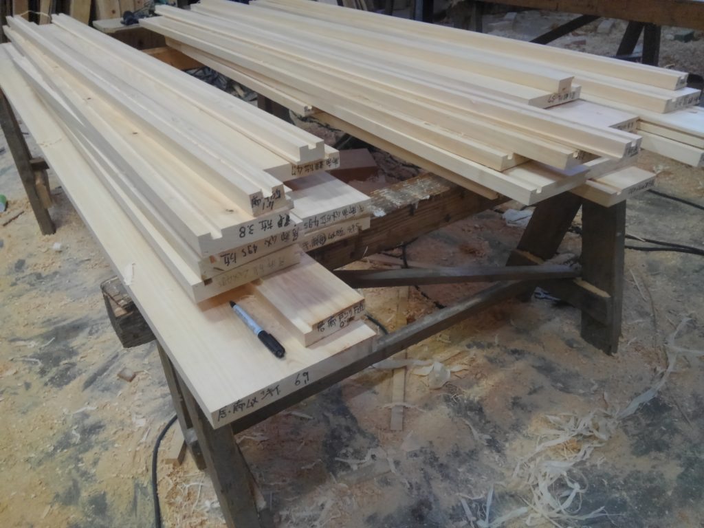 その後、木の枠材を、必要寸法に製材して、「よっしゃぁ!!!!削るかぁ!!!」で気合を一発入れたんですが・・・機械の刃が、ポロット・・・情けなくこぼれとって、一気にヤル気減少・・・・