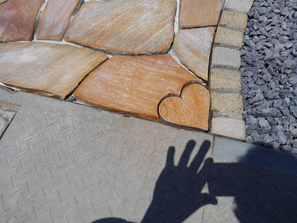 今回のお客様、なかのよいご夫婦さんという事で、機転を利かせたのか???一見怖そうな左官屋さんが、通路の端に小さく埋め込んだ、「ハートの石」