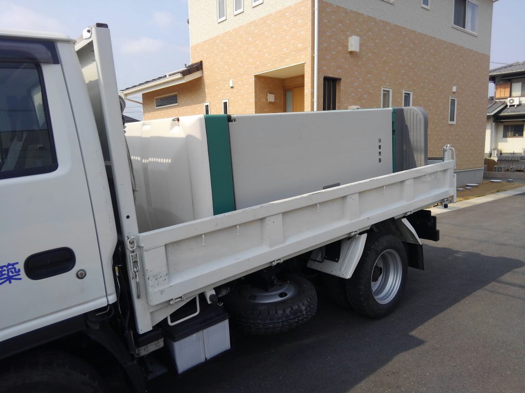 まぁそんなとこで、雰囲気と、敷地状況の確認を行い、その後、ついでに玉島のO様邸新築工事で使っていた、仮設便所を今月末から入ってくれる外構屋さんの邪魔にならんよう撤去に寄ってきました。