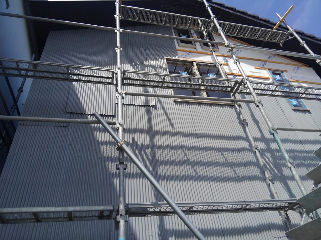 昨日に引き続き、外壁のサイディングという綺麗な板を張っとったんですが、完成間近で、「材料が足らんが!!!」になってしまい、すぐさま建材屋さんに電話を掛けても、おえんのは分かっとんですが。。。一応注文を掛け、4枚ほど足らんという、情けなさを味わいながら、鉄板張りを行いました。