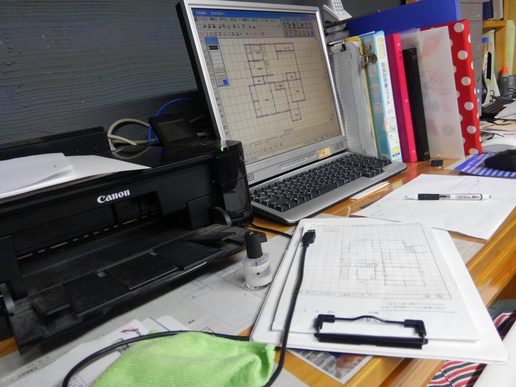 そんな今晩の事務所。隣のパソコンでは、嫁さんがお世話になっとるN様邸の介護保険申請図面を、書いとるみたいですが、まぁあんまり見んようにして・・・・じゃけどなんか気になる・・・・・まぁ。ほっといてとりあえず棟梁日誌の更新です。
