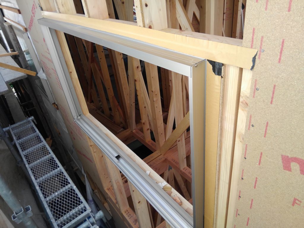 今日はサッシ枠の取り付け作業を中心に社長と二人、時々喧嘩をしながら共同作業。