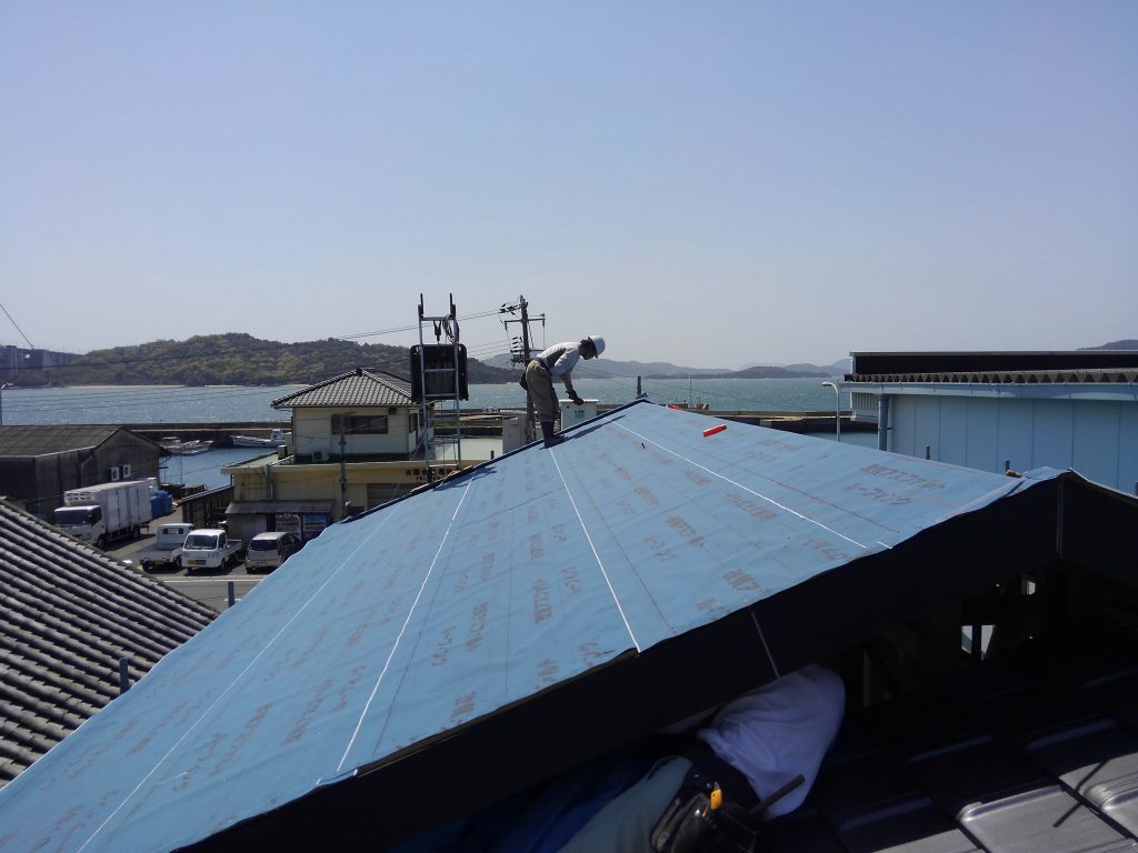そして、今日から瓦屋さんも現場に来てくれ、潮風に吹かれながら黙々と頑張ってくれとります。