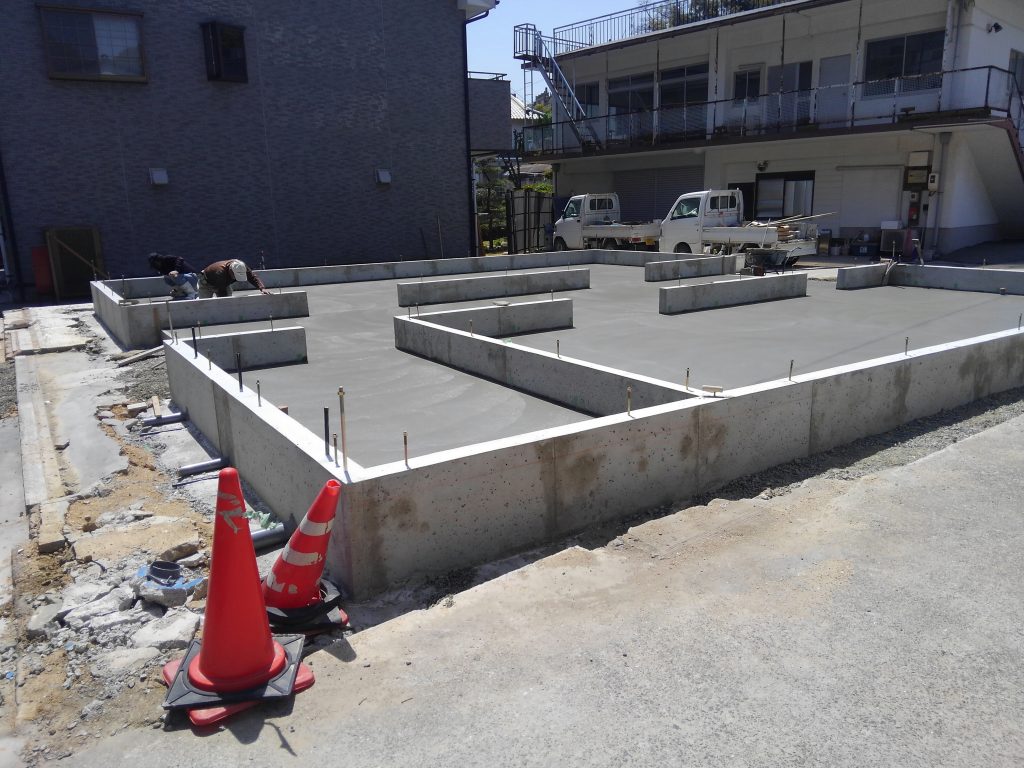 その他、近所のT様邸新築工事では、基礎屋さんが、内部のコンクリート土間打ち作業を数人で行ってくれとります。