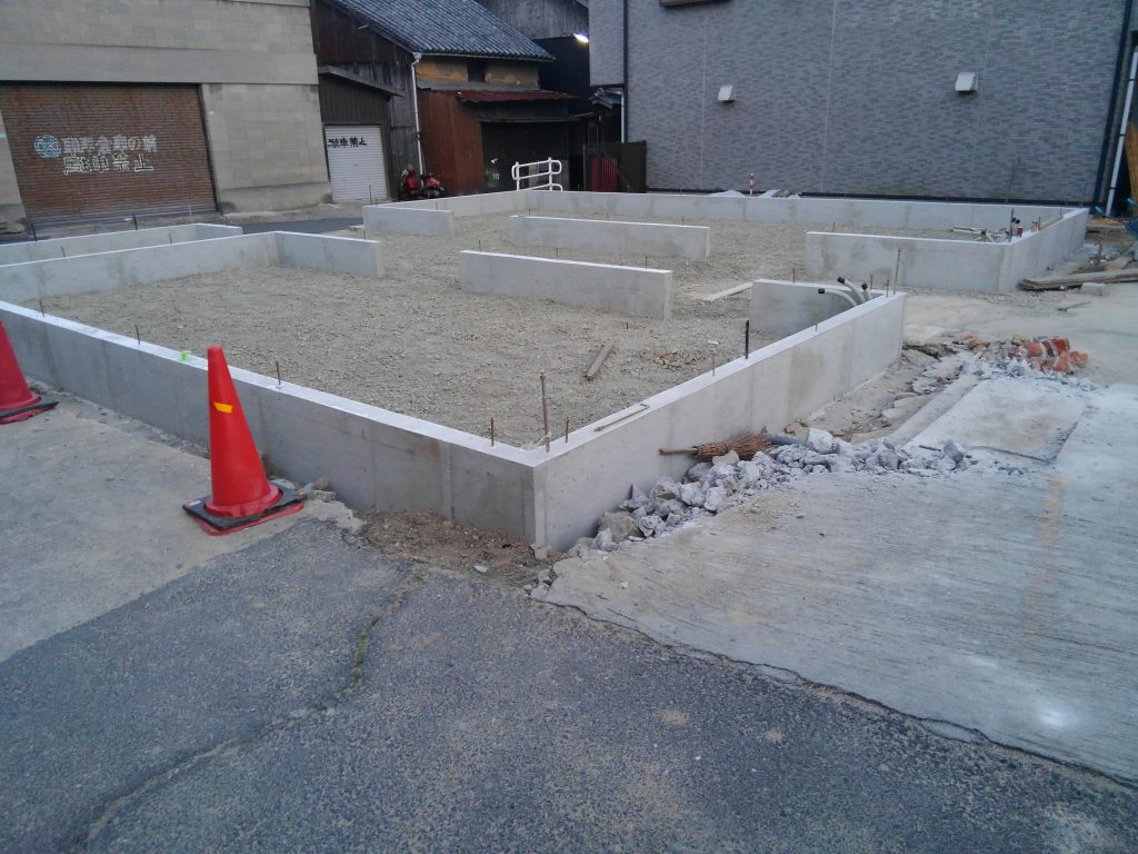 その他、近所のT様邸新築工事では、今日は基礎屋さんはお休みで、水道屋さん、電気屋さんと土間のコンクリートの下に、あらかじめ仕込んでおく配管作業を行ってくれていました。