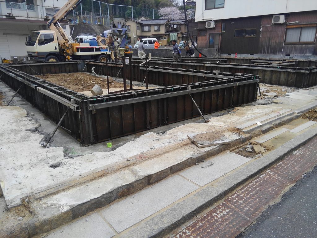 その他、今日は近所のT様邸新築工事の基礎のコンクリートを流し組む作業がありました。