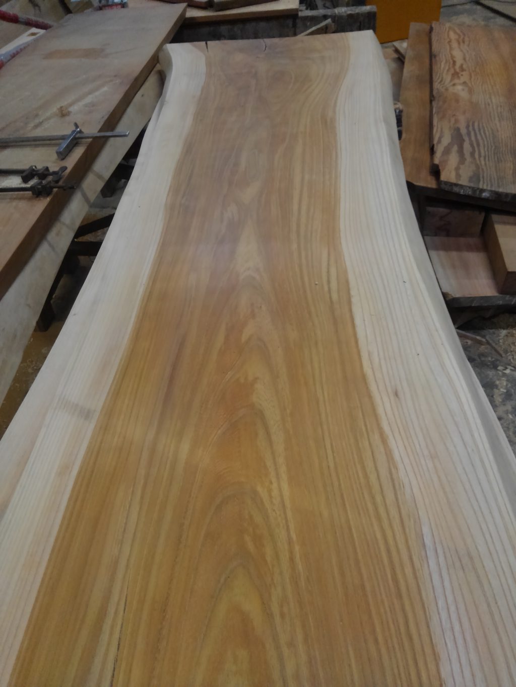 腰板に使われる無垢の栃の腰板。