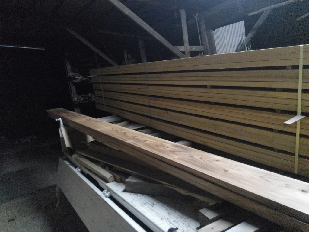 この木材も、数か月後には、新しいお客様の元へとお嫁入りですが、しばらく我が家の子供たちと同様、大切に那須建築の倉庫で健やかに乾燥期間に入ります。