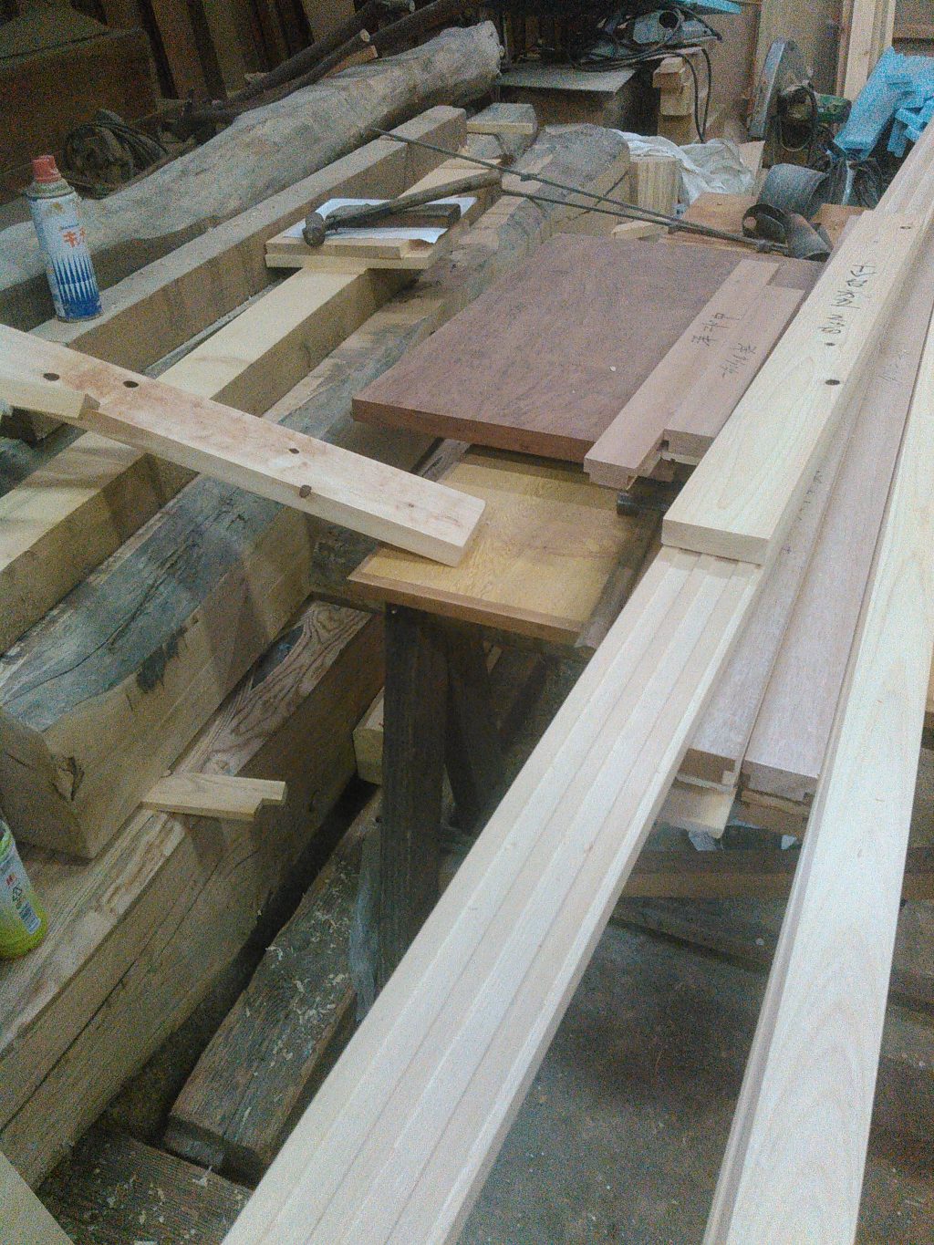 冷たい水でカンナの刃を何度も研ぎ手がカチンコチンになったり、コンクリートの土間から伝わるなんともいえん冷気、ボロッチョな作業場のため時折「ピュッと・・・」入るすきま風を感じながら、厳しい冬の加工でした。