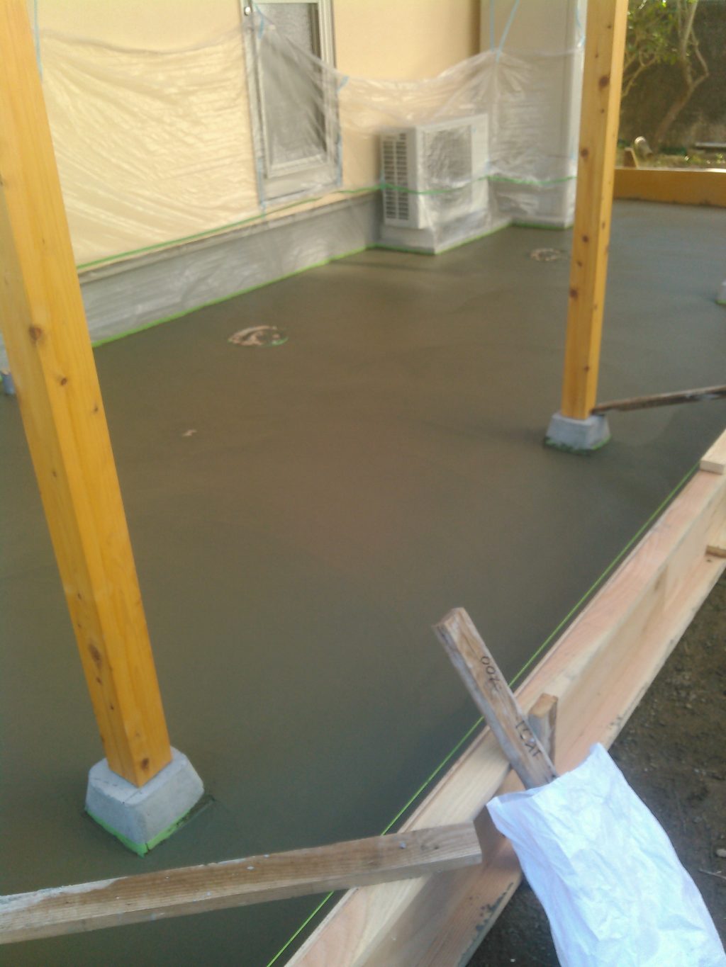 近所のO様邸新築工事では、本日、気温も上がったこともあり、家の裏にチョコット便利な土間のコンクリートを土建屋さんに作ってもらいました。