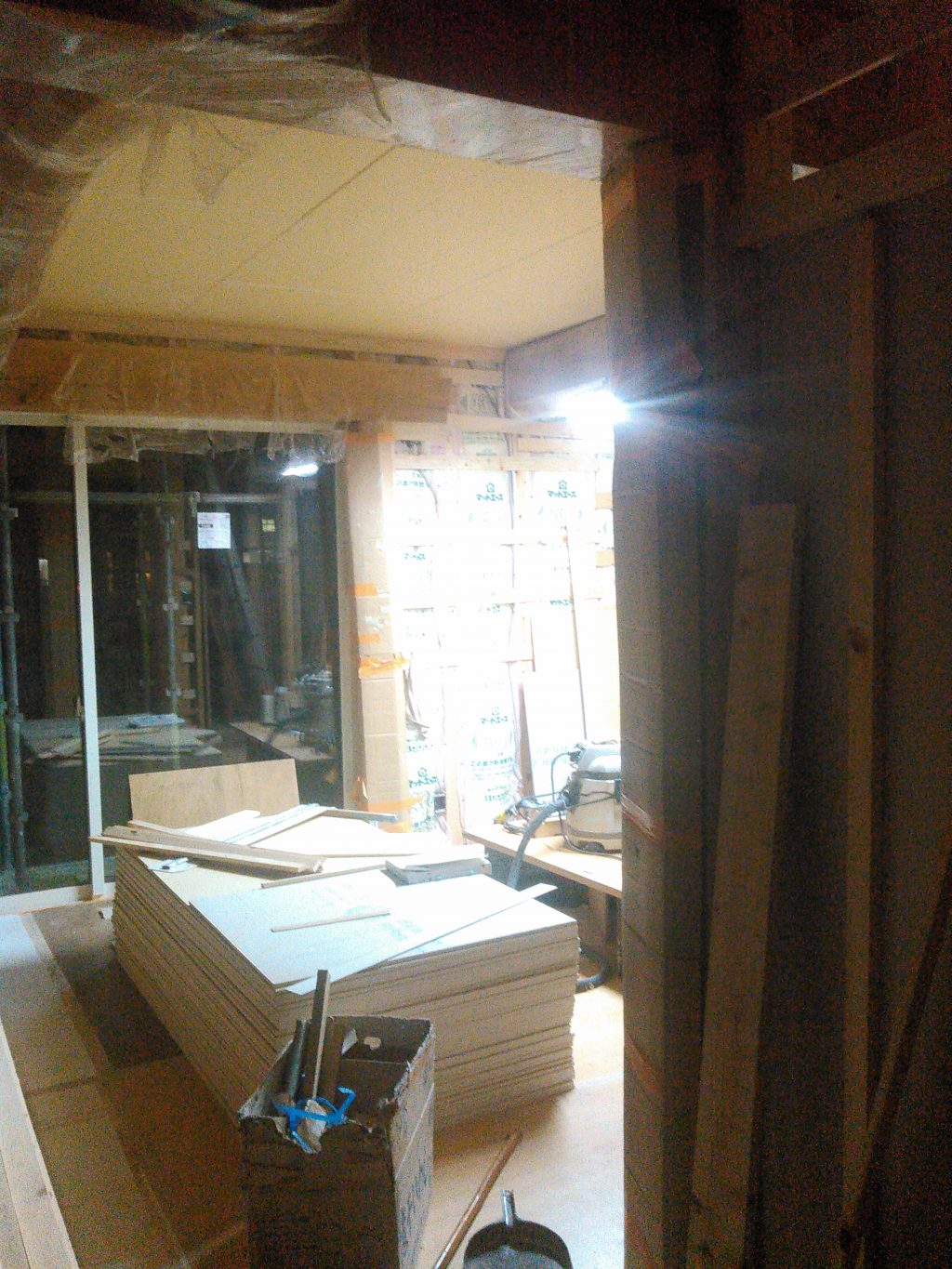 そんな本日は、昨日に引き続き玉島のO様邸へ出動。今週は「仕事ガンバルぞWEEK」(英語まちがっとったらスンマセン)ということで、朝から晩まで、休憩は昼飯ぐらいで、タッタカタッタカ・・・大工仕事ガンバリマシタ。