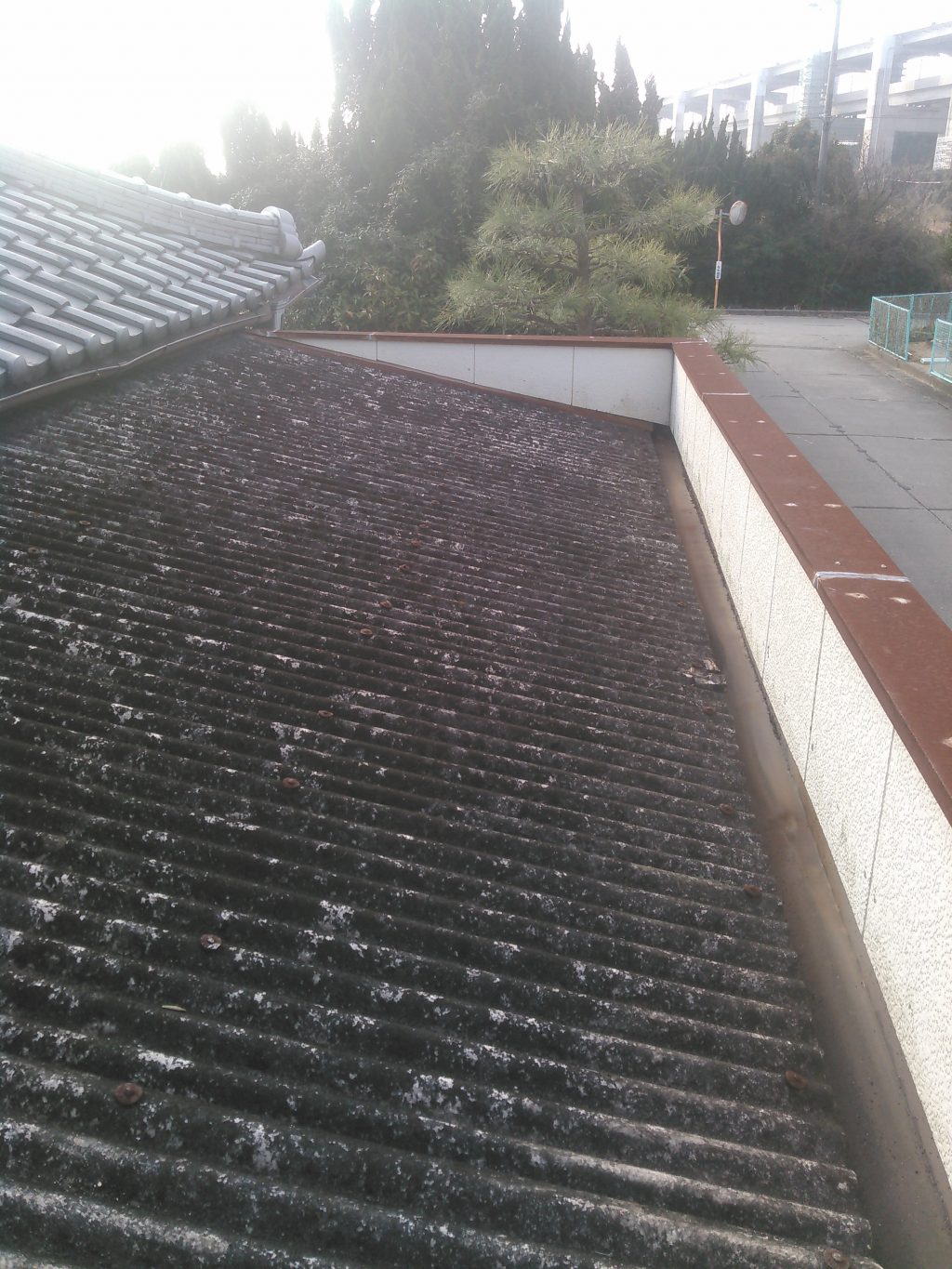 やはり海に近く、屋根面もスレート作りのため、いろいろで限界!!!になっとるんで、いっぺんスレートを剥がし、新しく波板の鉄板を葺く作業を行いました。