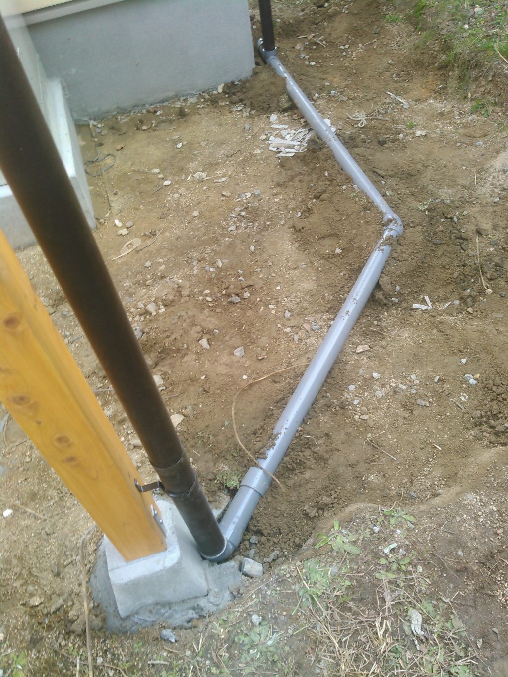 木の骨組みを組み、その後屋根にビニールをペタペタ張って、その先にトイを掛け、雨の水を排水溝へ流れるように、排水管を仕込む、関連作業。