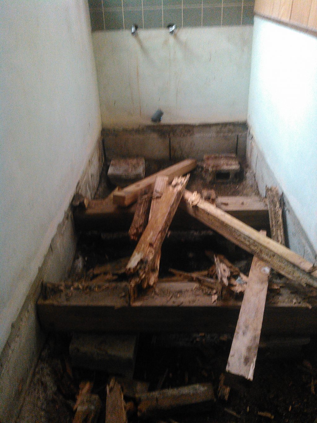 今日は「洗面所の床がフワフワするんじゃぁ!!!」との依頼から、社長と二人の共同作業。