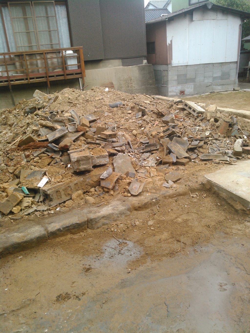 路地の奥を進み、車も入らない厳しい状況の古い建物の解体でしたが、大方ペチャンコになり、残骸が少し残っとるまで進行中、今後は趣味の畑をしながら、土地を利用するようで、今後が楽しみです。。。