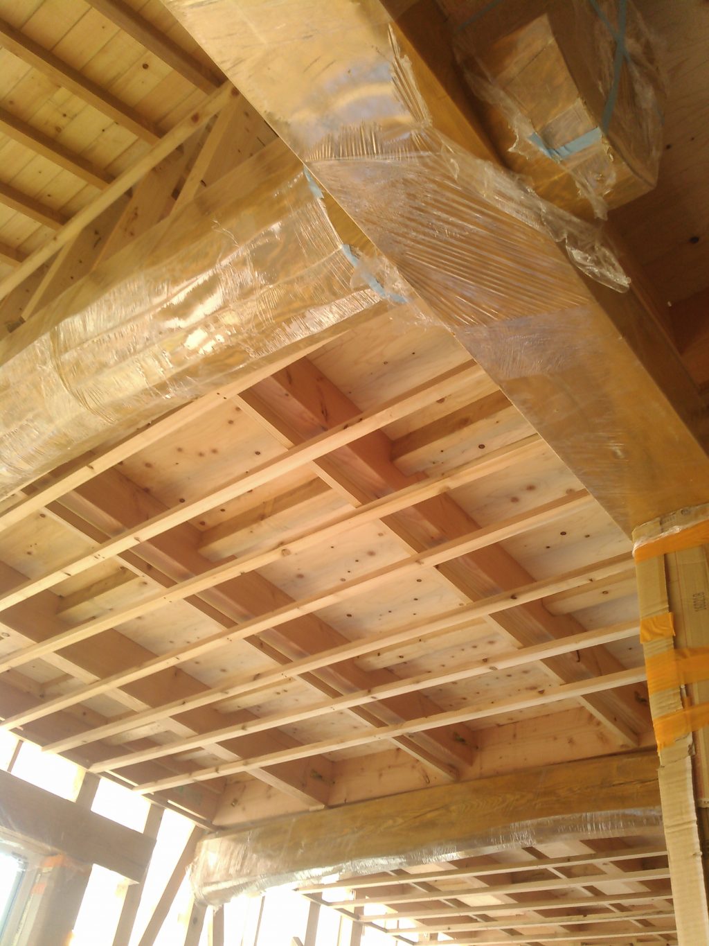 社長の方は近所での依頼やら、なんか知りませんがゴゾゴゾ作業もあったみたいで、昨日から始まった外壁作業は一時中断となって、一階周りの天井下地の組み立てを行いました。