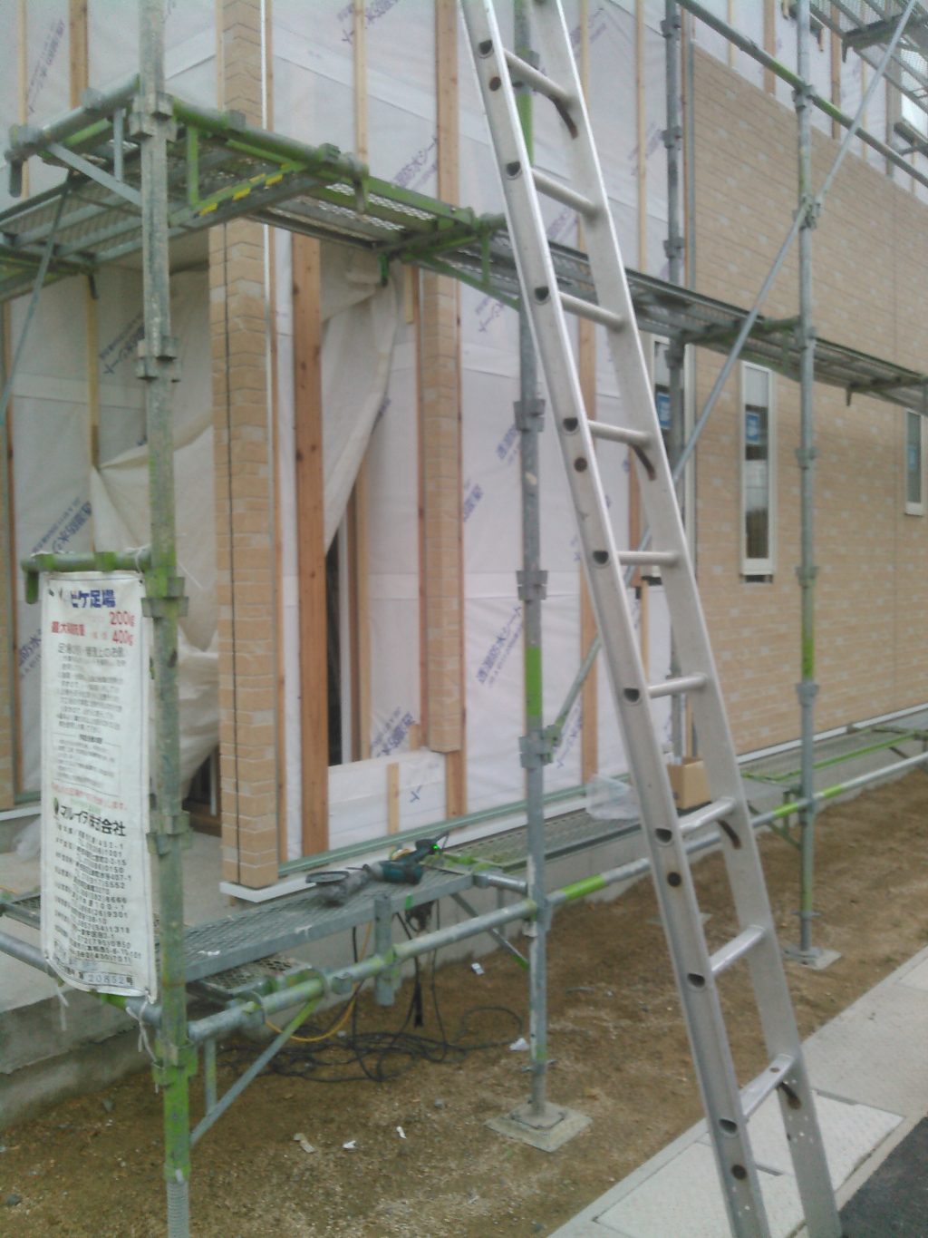 その後、昼からは、社長と二人、玉島のO様邸新築工事の現場へ外壁を張る作業へ出動。