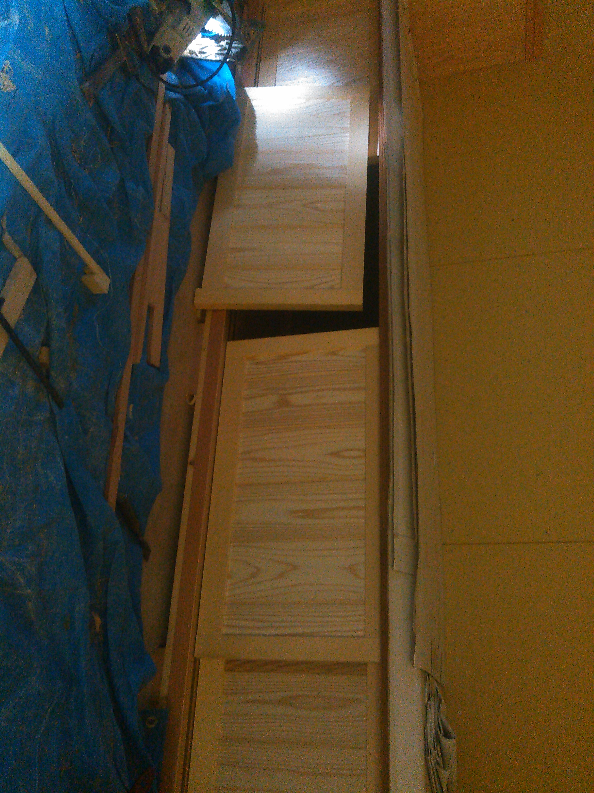 昨日の悪夢のような、「建具がデカいぞ・・・」事件から一日、なんとも言えん「休みたいなぁ・・・」の朝を迎えましたが、「やり替えにゃドガにもならん!!!」で結局作業場で、一から作り直しとなった、今朝の家づくり。