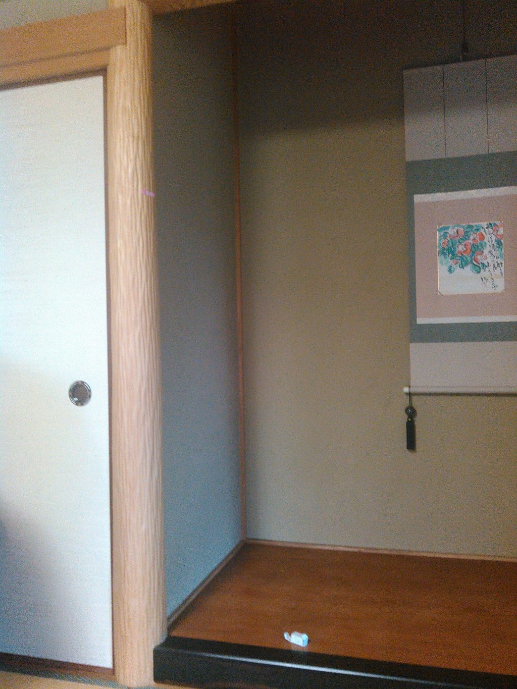 その後、昼からは数十年前に建てさせて頂き、長い間おせわになっている近所のK様邸での、建具のコマの交換、床柱にチョコット改造の工事へとお邪魔させてもらいました。