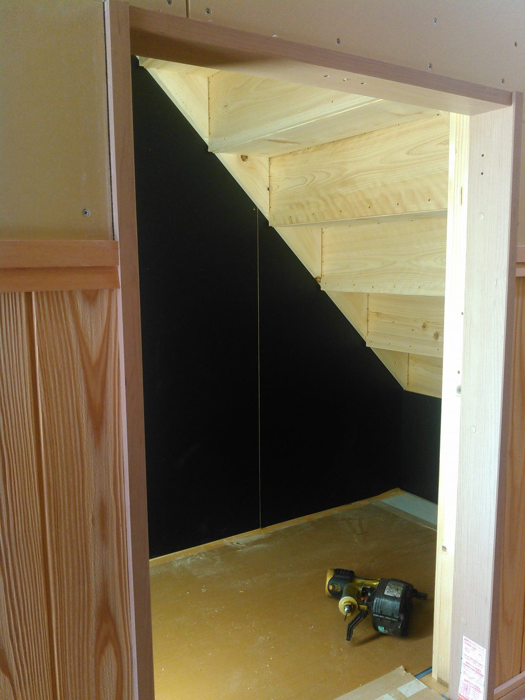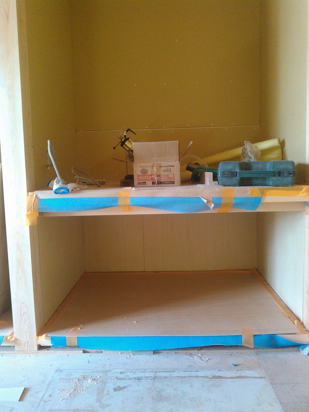 そんで、余った時間で、やはり近所のO様邸新築工事で、押入れのベニヤ板張りを、チョロチョロット行い今日の作業は終了でした、