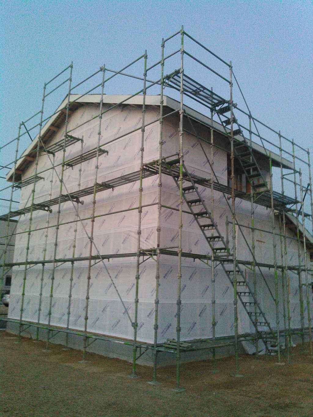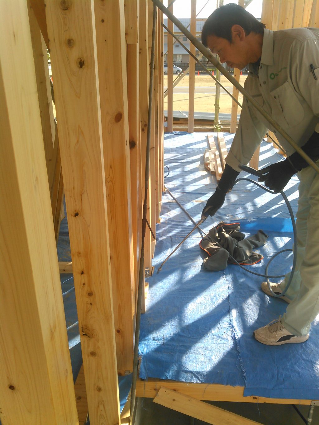 シロアリ屋さんも入ってもらい、木材の消毒、床下の消毒などやってくれています、その後外部の防水シートも張り、雨が降っても大丈夫になってます。