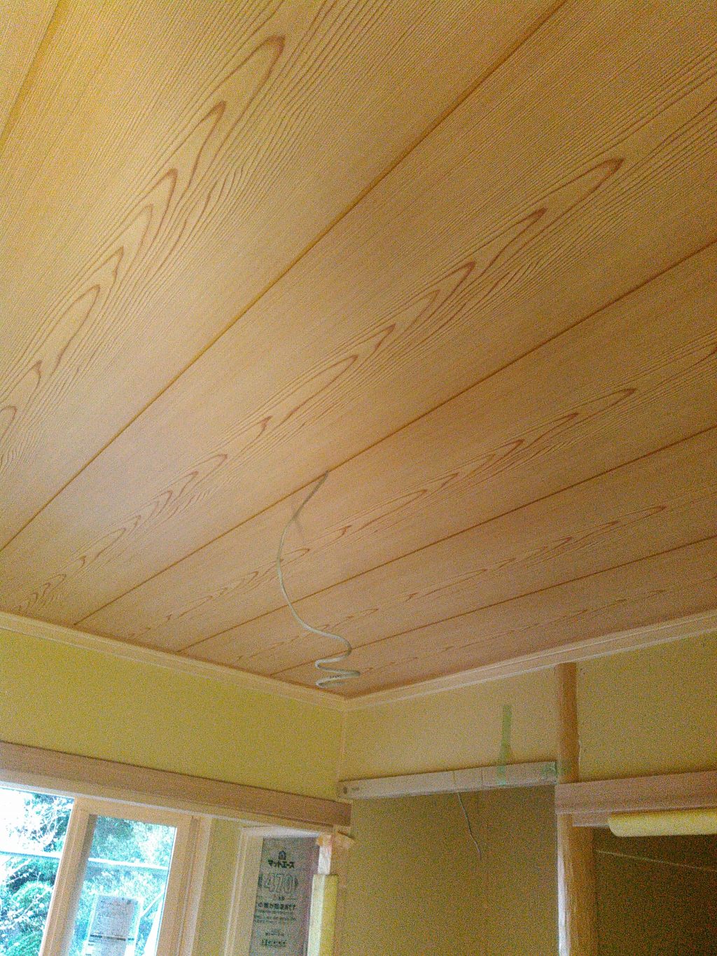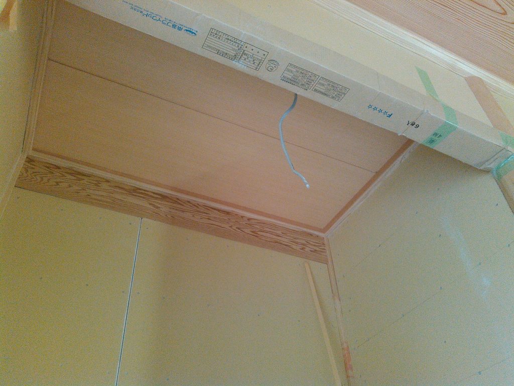 そんな本日は、ワシは和室の天井張り、社長の方は洋室の廻縁、巾木などの取り付け作業を行いました。