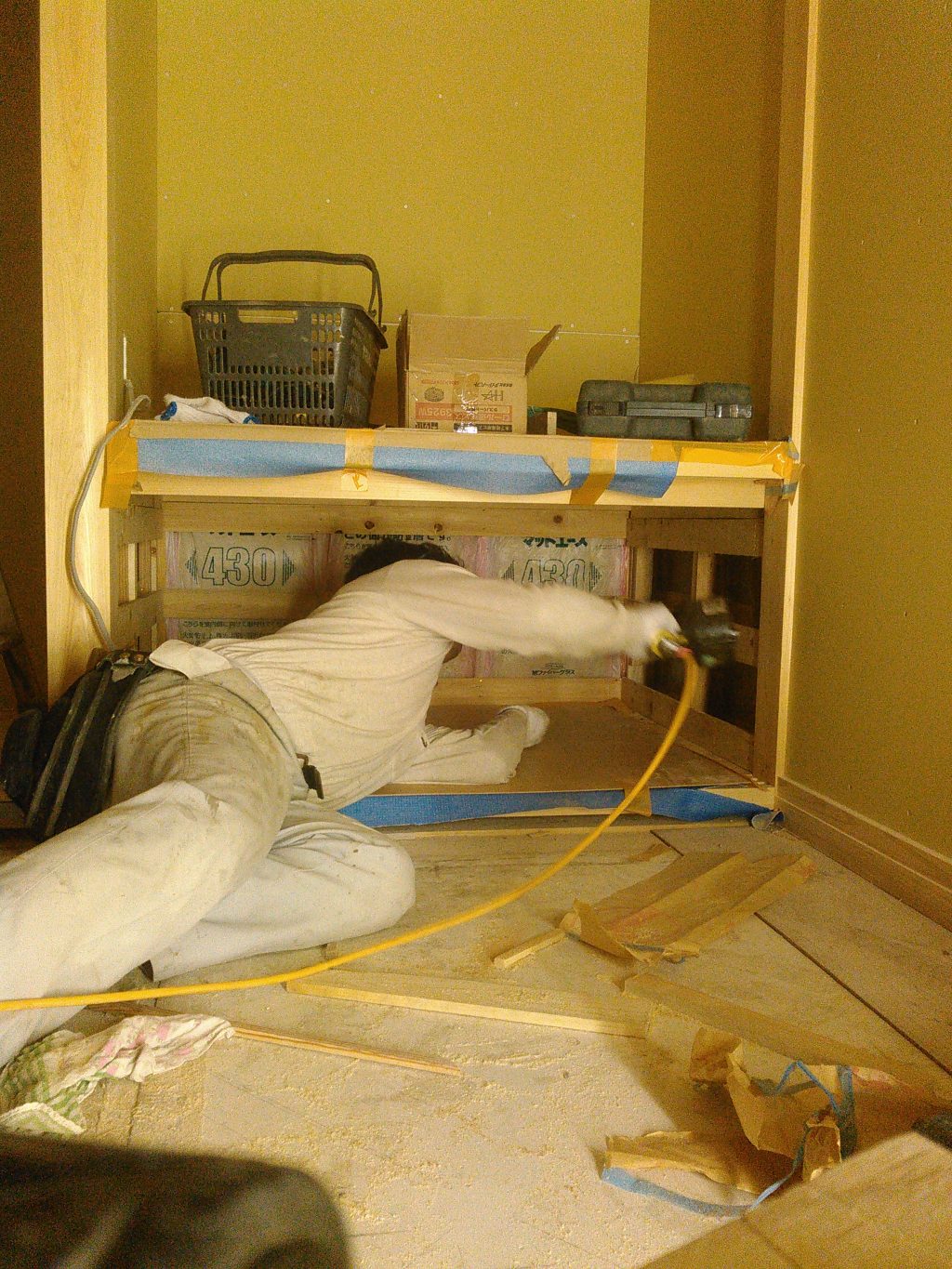 その後は、押入れの下地板の取り付けなど、遠慮のいらん仕事をバリバリやってきました。