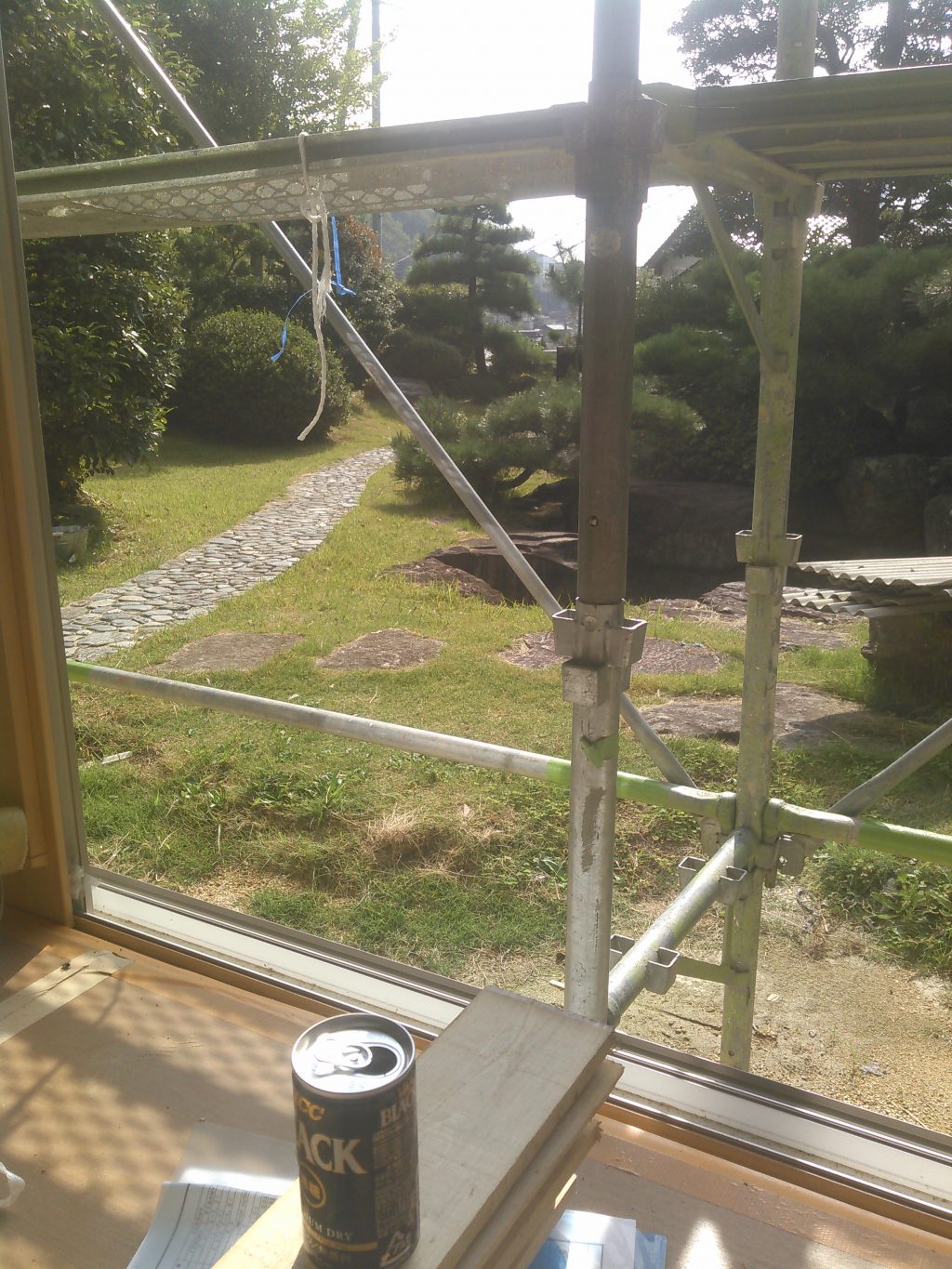 風で「バタン・・・」と吹っ飛ばんよう、ロープでくくりつけてやりました。