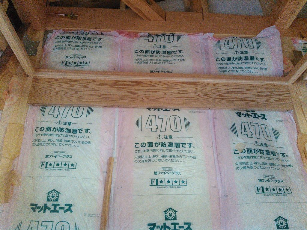 最近の住宅メーカーでは直貼りという、桟を打た直接柱に石膏ボードを打ち付けるのが主流ですが、那須建築の古い考えなんか??ただ遅れとるだけなんか???なんと無く心配で・・・昔ながらに柱の上に細かく桟を打ち、その上に石膏ボードを取り付ける下地作りをガンバリマシタ。