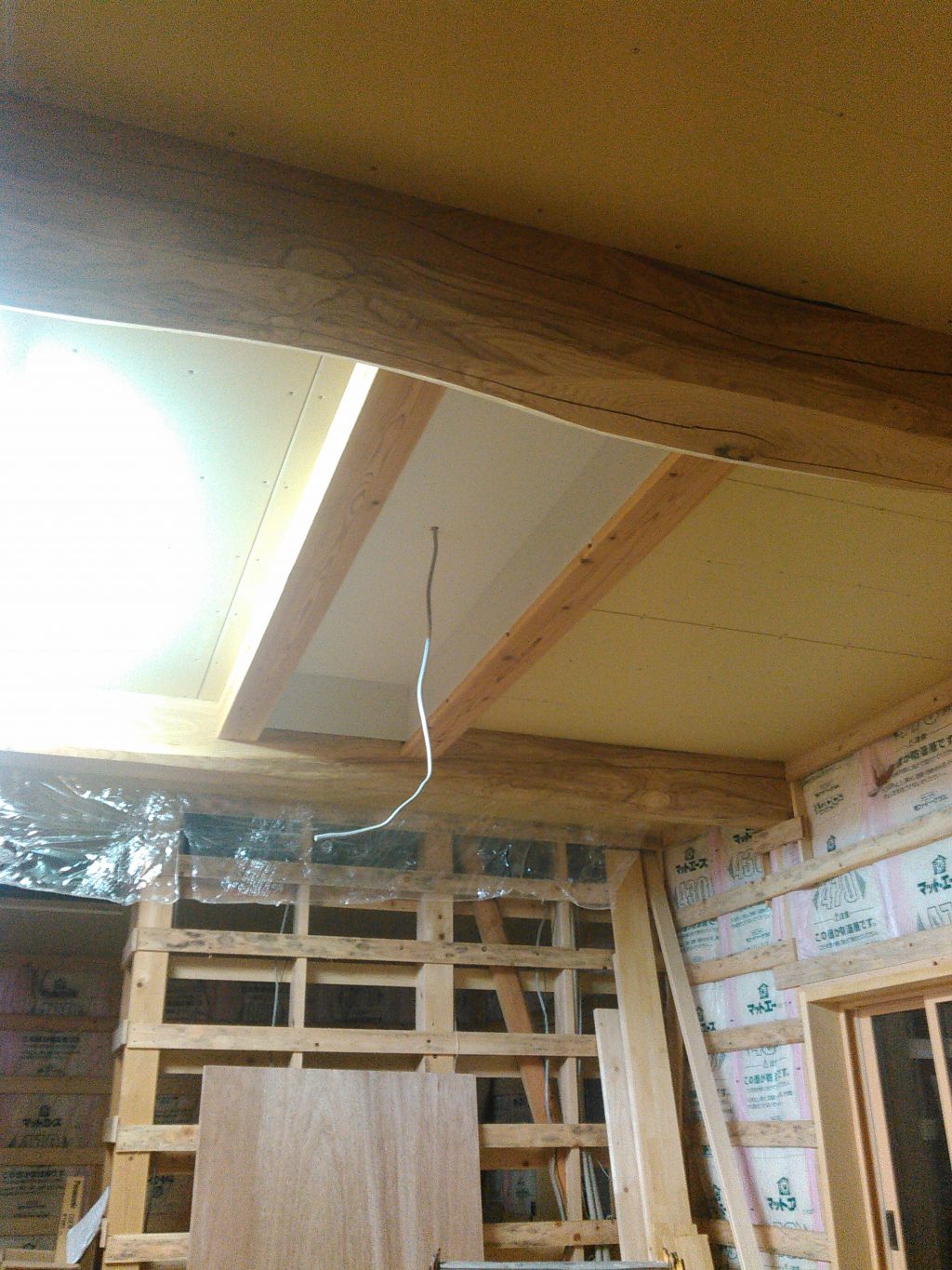 そして余った時間で、埋め込み照明の内部のベニヤ板を張り今日の作業は終了でした。