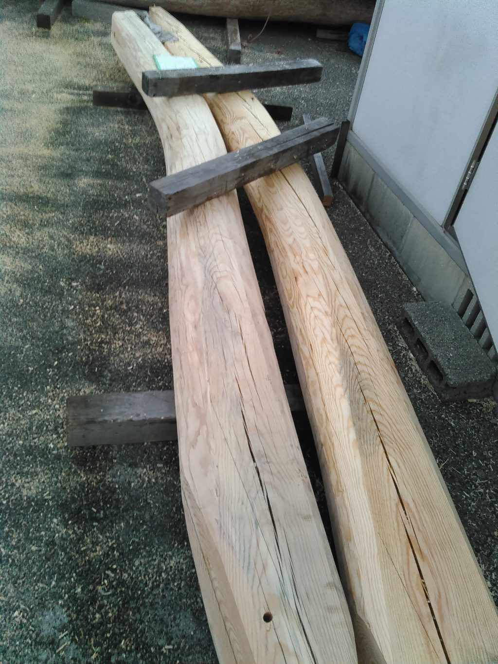 今度お世話になる玉島のO様邸新築工事の化粧丸太、大黒柱の材料選定を少々行いました。