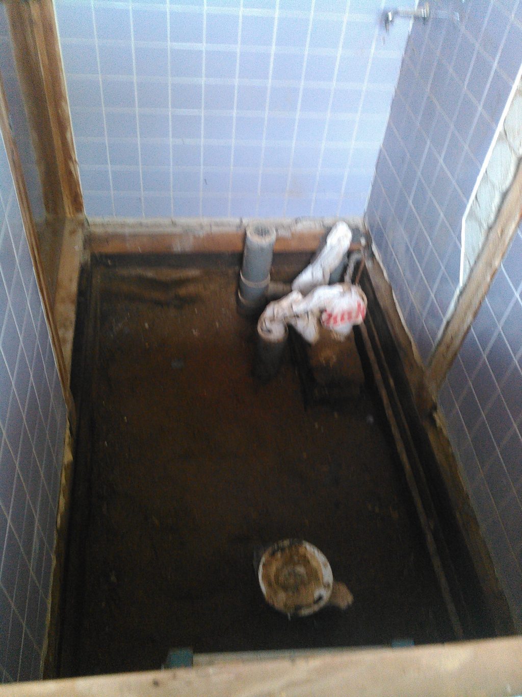 天井、壁と案外さっさと作業は進み、「こりゃぁ。。楽勝じゃぁ。。。。」と思ていましたが、最後の床を解体してみると、床下に水たまりが。。。。(なんか嫌な予感が・・・・)